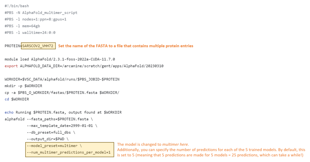 On October 4th, 2021, DeepMind released the AlphaFold-Multimer publication on bioRxiv, closely followed by updated code and models on GitHub. AF-Multimer is an adaptation of the original architecture, but now specifically trained to more accurately model protein-protein interactions. This page gives a summary of the implications for AlphaFold on the HPC when you want to run these specialized models.