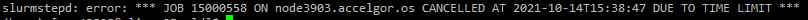 alphafold/ directory is located. If this is in $VSC_DATA, you can try to (a) free up space, or (b) join a virtual organization (VO), where you will have more storage capacity.Time limit exceeded