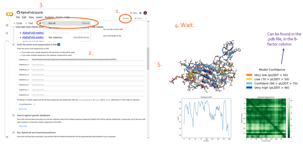 Another limitation of this notebook is that apart from the information shown above, there are no further files downloaded. Only one predicted structure is returned, in addition to the pLDDT and the predicted aligned error.