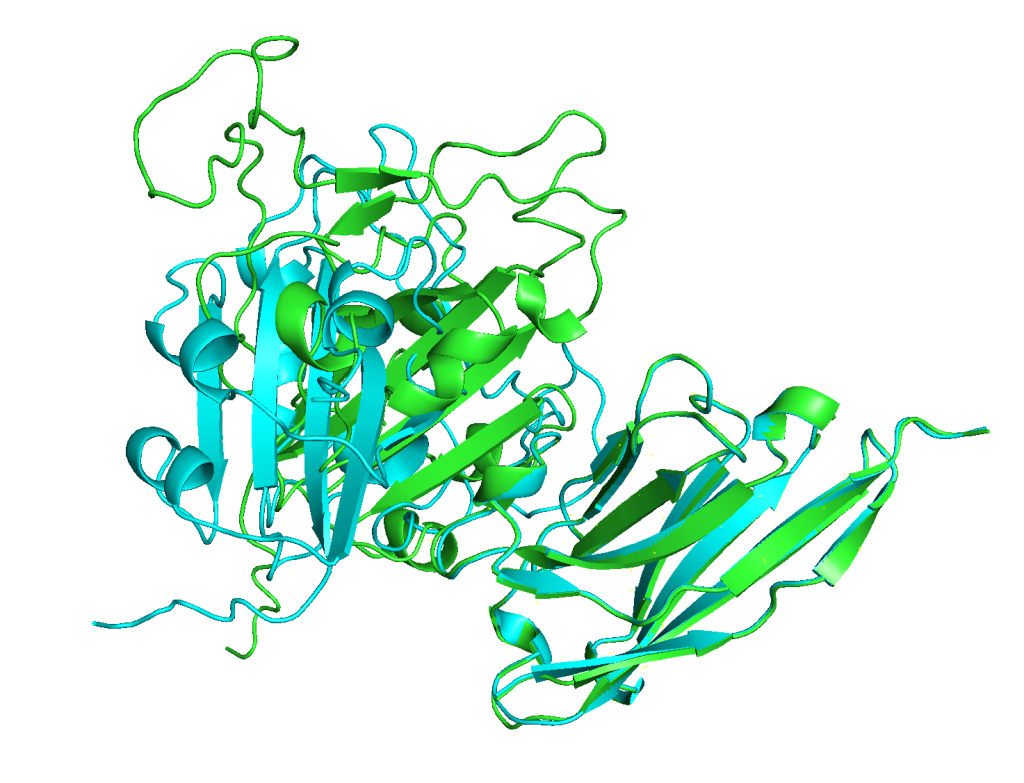 ranked_0.pdb on the other hand does align nicely with 6WAQ.