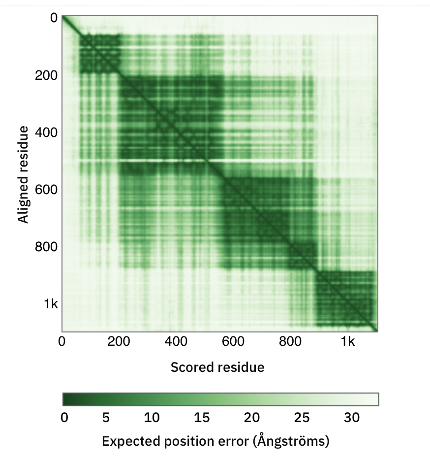 In the image below, you have an overview of all individual domains and where they can be found on the PAE plot. (source: https://www.embopress.org/doi/10.15252/embr.202154046)