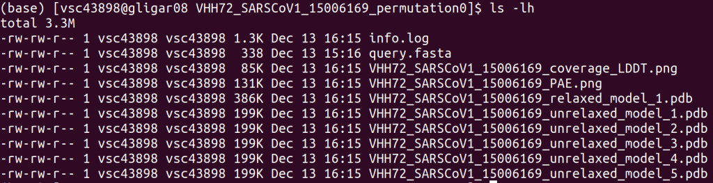 File naming. The protein ids (monomer) or fasta file name (multimer) are used at the start of the directory name, followed by the job id, and for the directory name: in case of multimer, by the number of the permutation.