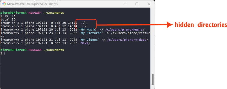 The ls command can be combined with arguments like ls -l or ls -la or ls -ltrh for extra information. You can also use ls –help to get some help in what arguments you can use and what they mean. The command ls -la, for example, means long (including extra details) list all (including hidden files) of the contents of a directory.