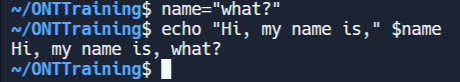 To use this name in your script you can refer to this piece of memory by appending $ to the variable name:echo "Hi, my name is," $name