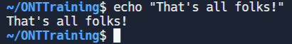 People have to open your script to see the comments, if they don’t look in the script they will not see them. Sometimes you have info that you want the users of your script to see. A command that is worth mentioning in this context is echo to send messages from the script to the screen (similar to a print command in other programming languages), e.g. when you include the following line in your script:echo "That's all folks!"