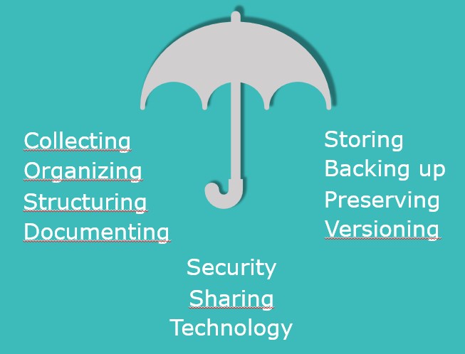 As you can see, RDM refers to any action that takes care of data before, during and/or after research.